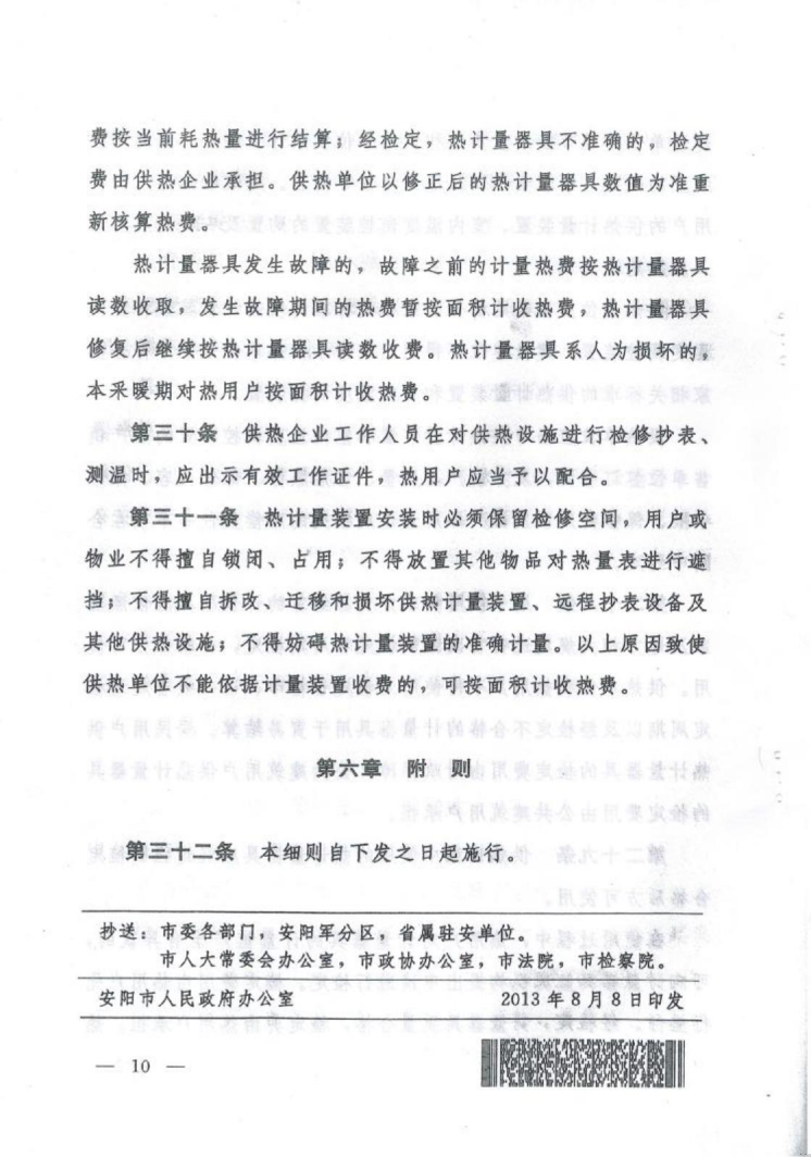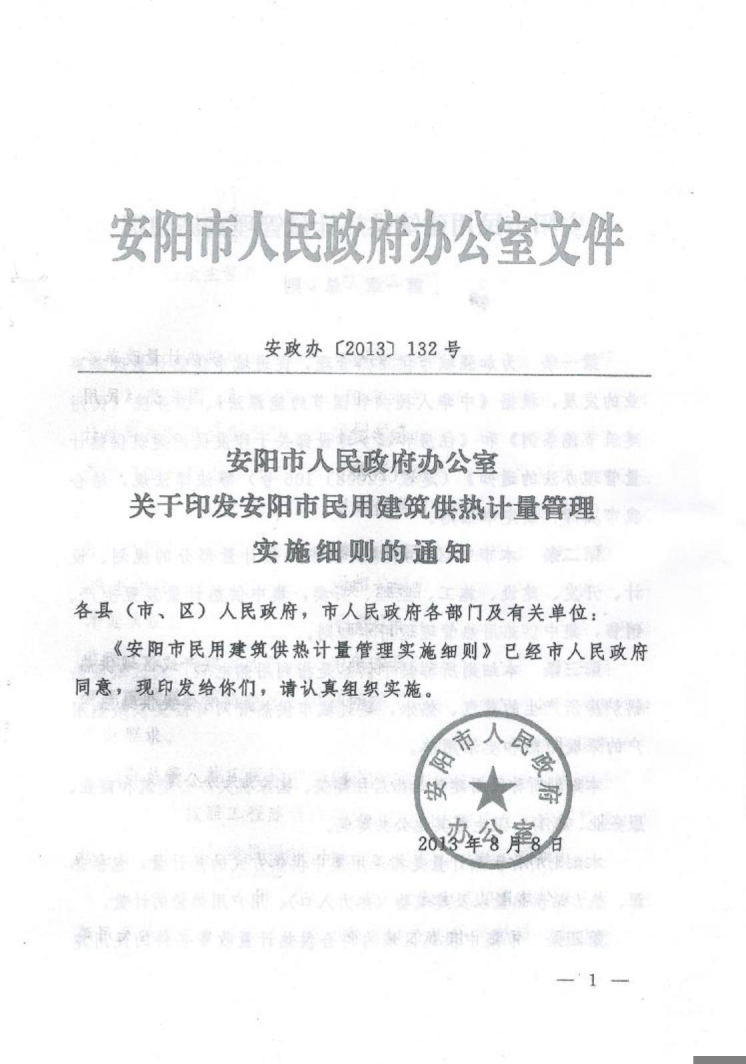 安阳市人民政府办公室best365官网登录入口关于印发安阳市民用建筑供热计量管理实施细则的通知